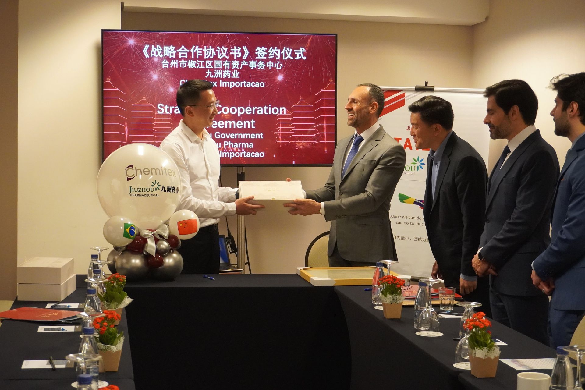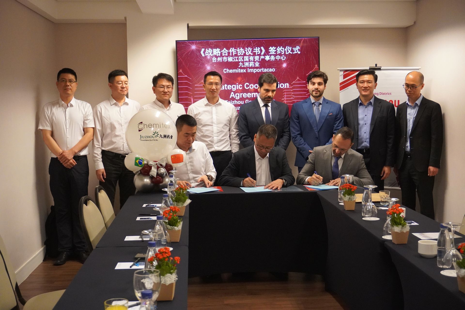 我们很高兴与中国台州市政府和最大的制药巨头之一浙江九洲签署了战略合作协议。此次非同寻常的事件发生在台州代表团访问巴西期间,标志着我们公司迈出了重要一步,巩固了我们在全球 API 和 FDF 市场的地位。